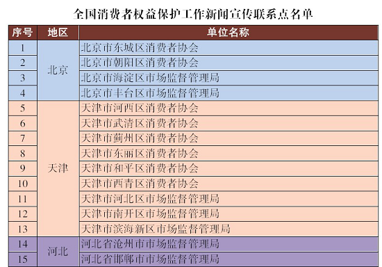 經過各省(自治區、直轄市)市場監管局、消協(消保委、消委會)推薦,中國消費者報社決定授予315個市場監管局、消協組織為“全國消費者權益保護工作新聞宣傳聯繫點”。