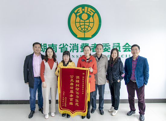 廖女士的母親向湖南省消委會贈送錦旗,表示感謝。周欣攝