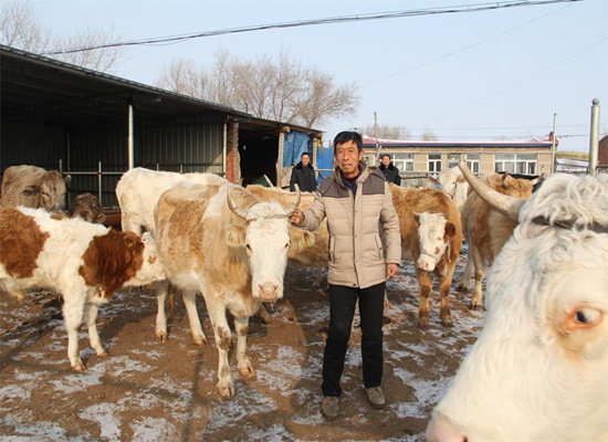 2018年入夏時節,湯寶強用貸款加少量自籌資金購買了10頭牛,有的母牛還懷着小牛,這對他日後來說,完全是意外之喜。送牛車停在湯寶強家後院的村路邊,10頭牛被卸下車后四處亂跑,眾人一陣手忙腳亂,最後一查點,竟然跑失了3頭。次日上午,在眾人的幫助下才找齊。全家人忙裡忙外一年多,又養牛又種地,特別是趕上了肉類市場的火爆行情至今不衰,湯寶強在還完首批貸款后,重新又貸款擴大發展養牛。