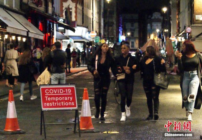 當地時間9月23日,英國新增新冠確診數高達6178例,創下了5月1日以來的新高,累計確診病例數達409729例。圖為在強制執行“酒吧晚上10點關閉”防疫新規的前夜,倫敦一酒吧街上人流絡繹不絕。 中新社發 高天胤 攝