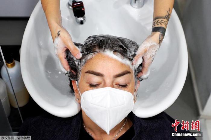 資料圖:意大利羅馬一家美髮店內的顧客戴着口罩。