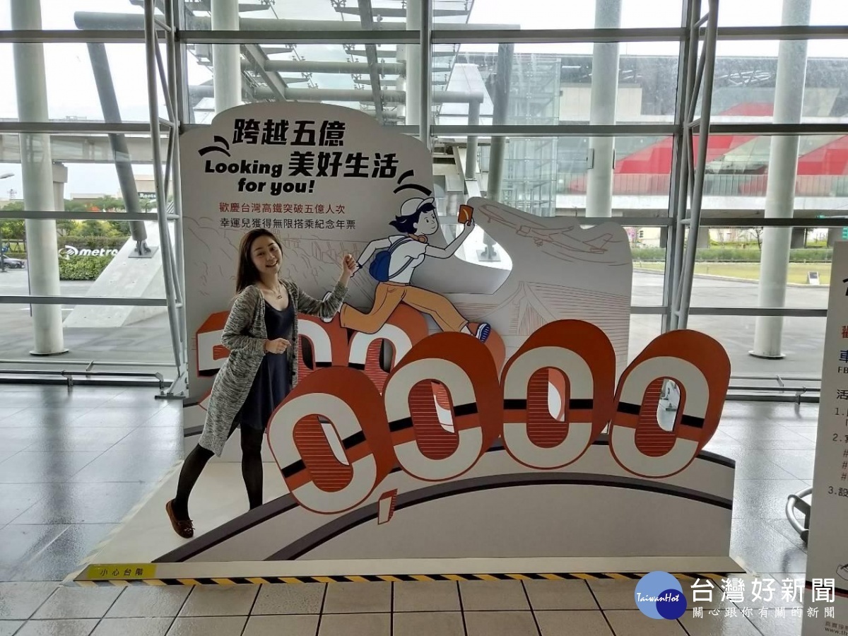 台灣高鐵營運累計搭乘人數即將突破五億人次大關,即日起推出「跨越五億 美好生活」贈獎活動。