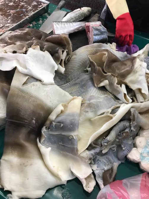 小時候陪母親去菜市場買菜,總是習慣跟在媽媽後面,看她怎麼挑菜,怎麼跟菜販搏感情,東要幾根蔥,西拿幾支辣椒,長大後媽媽年紀大了,我就幫忙提菜籃,或者拉著雙輪小拖車,陪媽媽逛菜市場總會有一股幸福感。但話說回來,以我逛菜市場的「豐富經驗」,似也從未見有「整張鯊魚皮」的,跟本文作者共感驚艷,只是一轉念又覺得鯊魚真可憐,希望買回去吃的人們要感念牠為人類肚腹所做的犧牲,在餐桌上要努力吃光光別浪費!