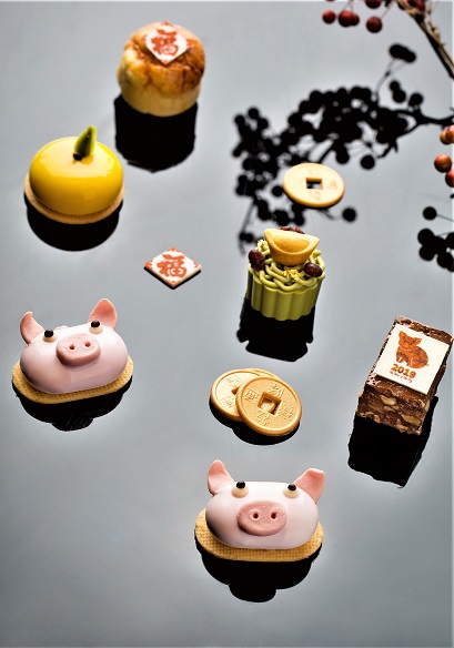 主廚指出,今年農曆春節應景的吉祥物是胖嘟嘟的生肖豬,於是將味甘而醇的烏龍茶奶霜結合清爽酸甜覆盆子果醬勾勒出維妙維肖的小豬,有「諸事圓滿」的祝福之意。同時,在主廚的巧手下,過年時分家家戶戶必定會準備的橘子,化身為酸甜可口,小巧可愛的柑橘慕斯球,不僅口感清新,更是大吉大利的好兆頭。雙人下午茶每套NT$1,680+10%,數量有限,菜色依實際販售狀況調整。